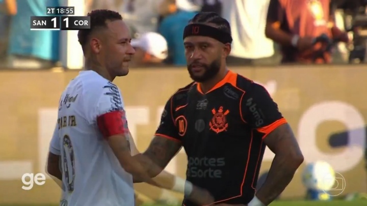 赛后,内马尔与德佩互换球衣并拥抱致意。